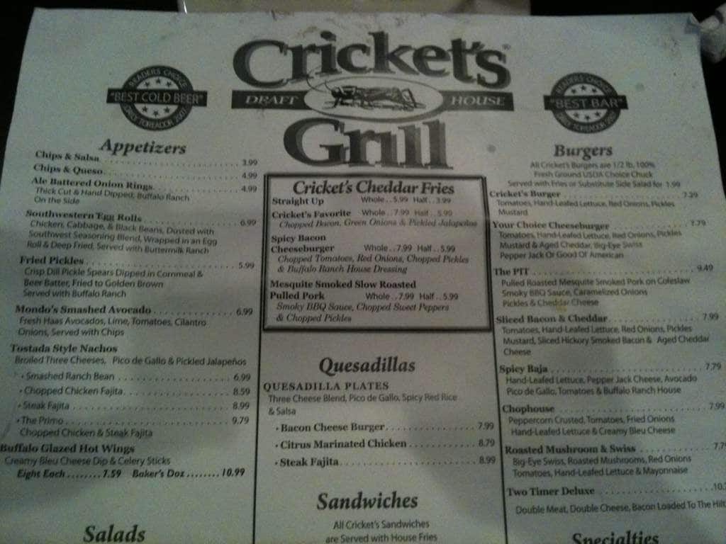 Menu Of Cricket S Grill Draft House Lubbock Lubbock